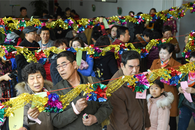 悬挂在阅览室内五颜六色的200条谜面内容照顾到了幼、老、中、青不同的年龄阶段,方便大家对照自己的能力来猜题。猜谜过程中场面既热烈,又秩序井然。这是孩子们尽情展示自己智慧和快乐的时间,活动中,他们有的对着谜语小条认真打量,一旦发现会的就立刻揭下,兴冲冲地去排队兑奖;这也是老年读者挖掘自己知识存储的大好时机,他们带着笔和本,认真地在本子上猜谜底……