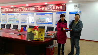 为全面贯彻党的十九大精神,落实好《中华人民共和国公共图书馆法》,满足基层群众的阅读需求,在新年到来之际,我馆分别在2月7日、9日为东丽区养老中心分馆和地铁4号线6标段项目部分馆送上精神食粮和新春祝福。