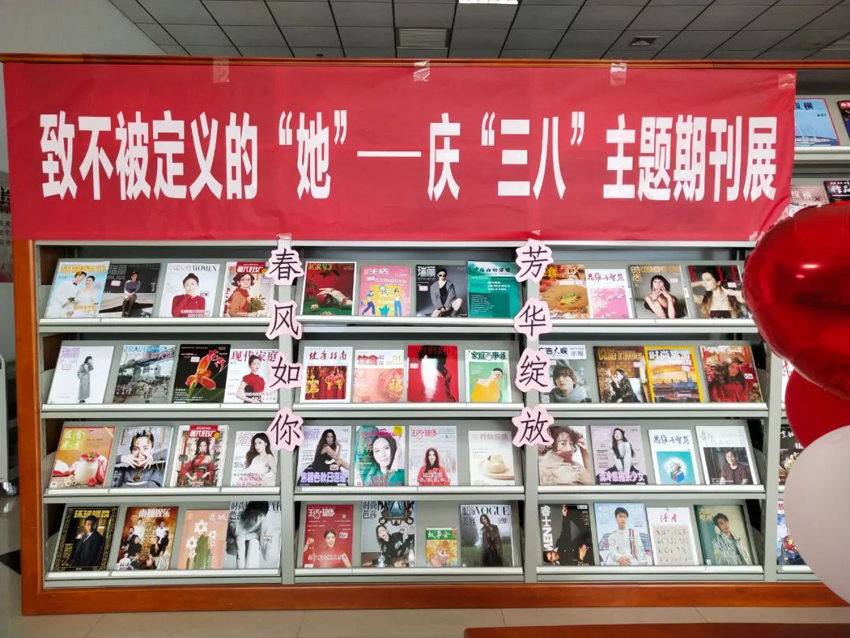 为庆祝第114个“三八”国际妇女节,弘扬和传承优秀的传统女性文化,凸显女性独特的文化现象所具有的魅力,构建和谐、阳光的现代女性精神家园,我馆阅览部3月份举办主题为“致不被定义的她”的专题期刊展。
