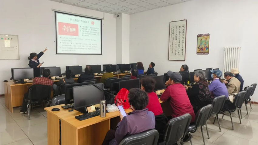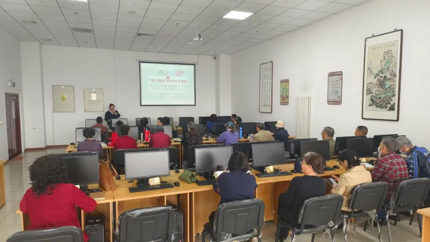 4月15日,在世界读书日来临之际,东丽区图书馆“零基础”中老年公益手机电脑培训班开展“学习强国”APP线下体验活动,进一步发挥“学习强国”平台的优势,不断扩大学习平台覆盖面和影响力,提高“学习强国”平台在老年人群中的知晓度和使用率,丰富老年人的精神生活。