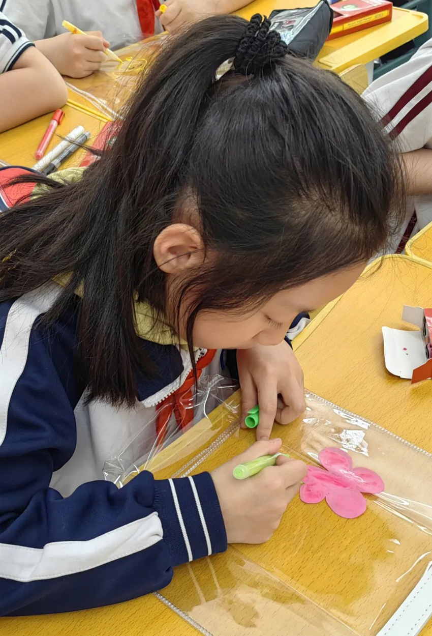 在老师的带领下,同学们纷纷拿出画笔,将自己喜欢的颜色与图案绘制在环保袋上。眨眼间,一个个精美的环保袋铺展开来,同学们在动手中践行了环境保护,减少了一次性塑料袋的使用。