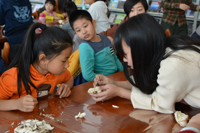 图书馆志愿者们也帮助各组家庭进行水仙雕刻,一步步完成雕刻作品的制作。