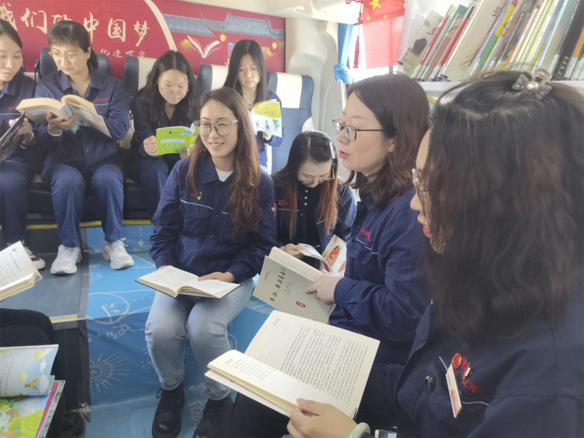活动中,流动服务车工作人员向大家介绍了此次读书活动的意义,并为大家介绍了书车的基本情况、图书类别、服务功能等。随后,大家都挑选了心仪的书籍,并进行了深入阅读,在“读好书、谈心得”环节中,广大职工们围坐在一起,纷纷将自己所喜欢书目中的经典片段、优美词汇等内容与大家分享,并结合实际,敞开心扉,从不同角度阐述了自己的所思所想、所感所悟,尽情分享读书带来的收获与喜悦。公司工会主席、副总经理赵海静及党委副书记、副总经理张昕昕鼓励广大职工:要坚持培养良好的阅读习惯,促进企业内涵式文化的发展,加强我公司精神文明建设,让每位职工都成为有温度懂情趣会思考的人。