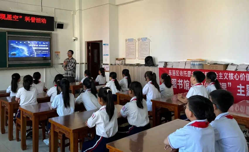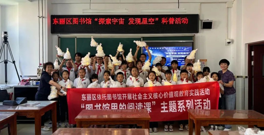 为带领广大读者了解宇宙,走进星体的世界感受。东丽区图书馆走进东丽区新源小学开展了“探索宇宙·发现星空”——宇宙星体知识科技周主题阅读实践活动。