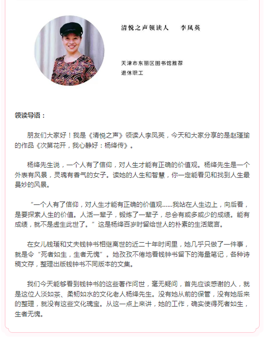 领读人李凤英分享《次第花开,我新静好:杨绛传》