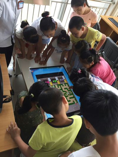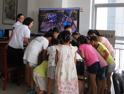 东丽区图书馆在2017年暑假期间多次为小读者组织Zspace设备以及少儿触摸桌设备体验活动。
