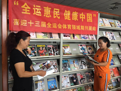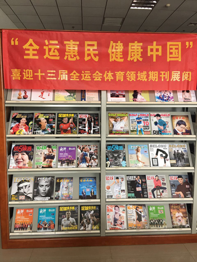 今年第十三届全运会即将在天津开幕,故此阅览部特开展体育领域期刊展览活动,展览活动共挑选出40余册期刊,其中内容包括球类、田径、户外运动、休闲运动、健身等体育综合领域。
