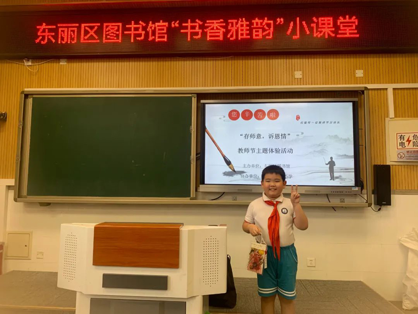 春华秋实,桃李沁香。为庆祝第40个教师节,弘扬中华民族尊师重教的传统美德和文化精神,东丽区图书馆“书香雅韵小课堂”——“存师意,诉恩情”教师节主题体验活动在东羽小学举行。
