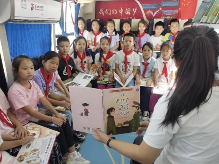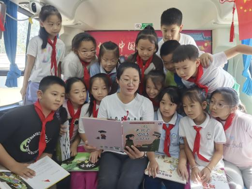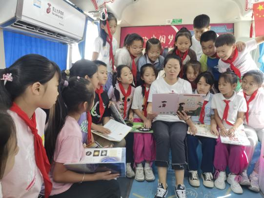 东丽区图书馆流动服务车开进刘辛庄回族小学开展——“ 书香润东丽·扬帆再出发”读书月阅读活动