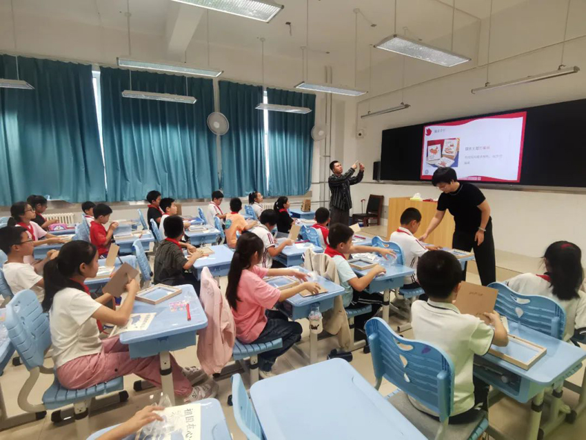活动中,图书馆老师还与大家展开了互动,为同学们带来了国庆主题竹编画体验环节。一搭一压间,一副副精美的竹编画作品制作完成,同学们带着对祖国的热爱与期许,共迎国庆!