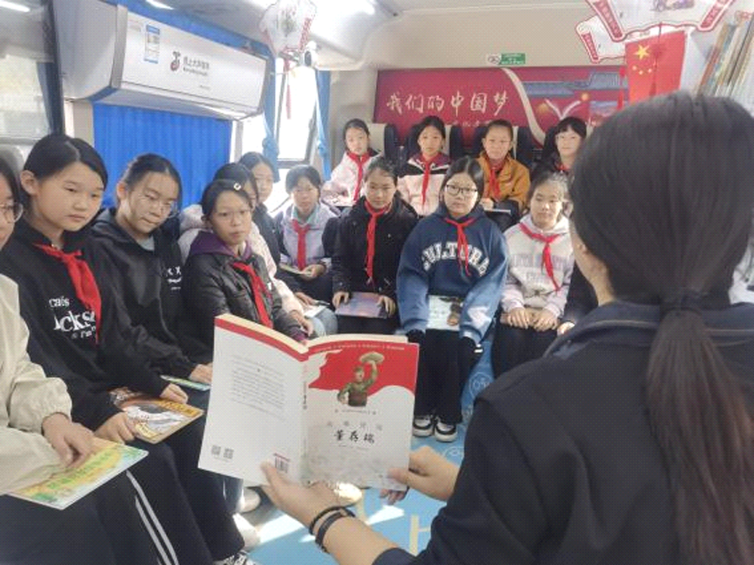 书籍是一扇窗户,让人走进历史、了解历史;书籍是一颗种子,让人产生情感的共鸣。为使青少年了解经典革命故事,传承红色精神,汲取精神的力量。2024年12月5日,东丽区图书馆流动服务车联合华侨城实验中学组织开展了阅读悦幸福·书润千万家——《英雄脊梁董存瑞》红色经典阅读分享进校园活动。