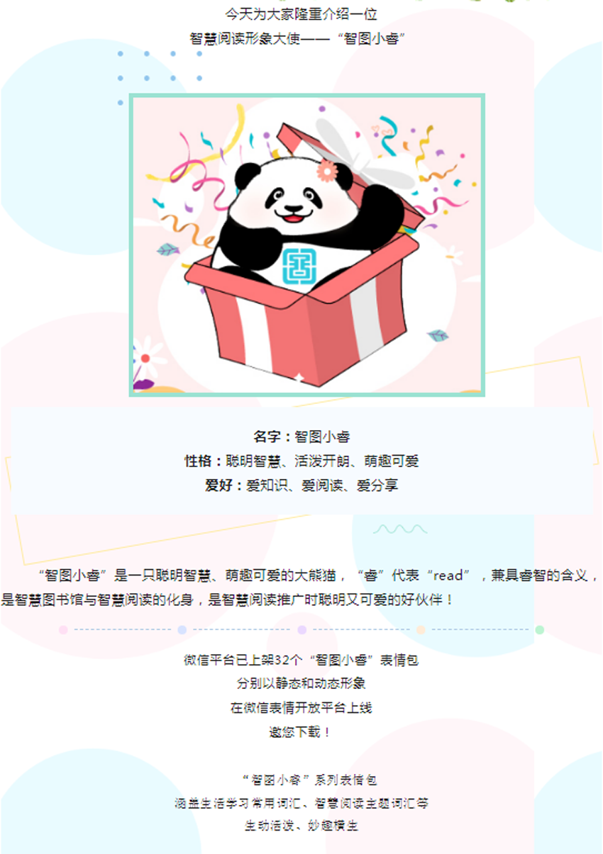 叮咚!快来领取智慧阅读大使“智图小睿”专属表情包吧!