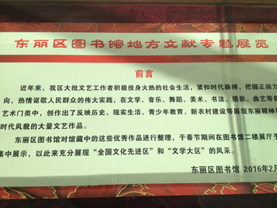 春节期间,东丽区图书馆举办了地方文献专题展览,展出了反映我区历史、现实生活、青少年教育、新农村建设等展现东丽精神和时代风貌的文学作品共百余册,吸引了大批市民、读者前来观展。 此次展览充分展现出了我区“全国文化先进区”和“文学大区”的风采,加深了广大读者对我区文艺工作者及其作品的了解,深受广大读者的好评。