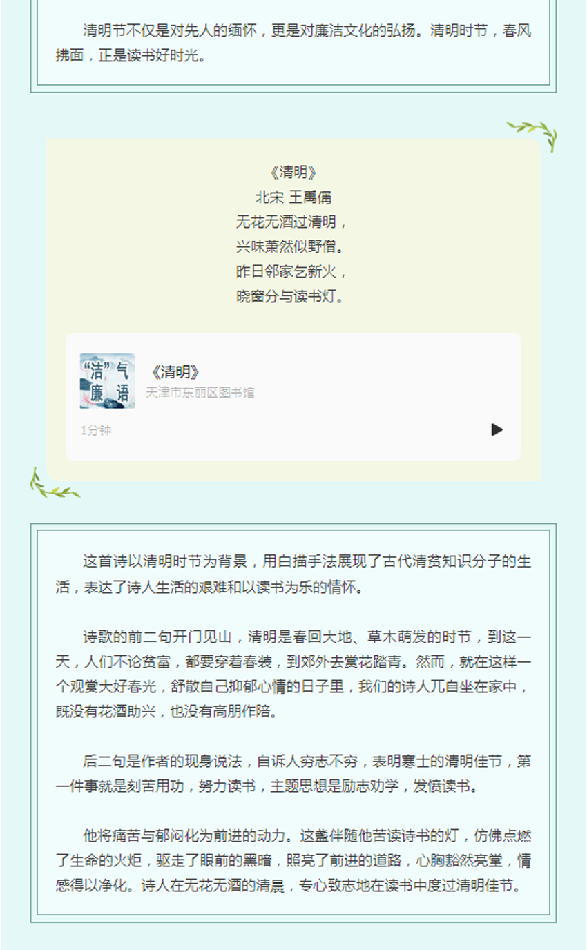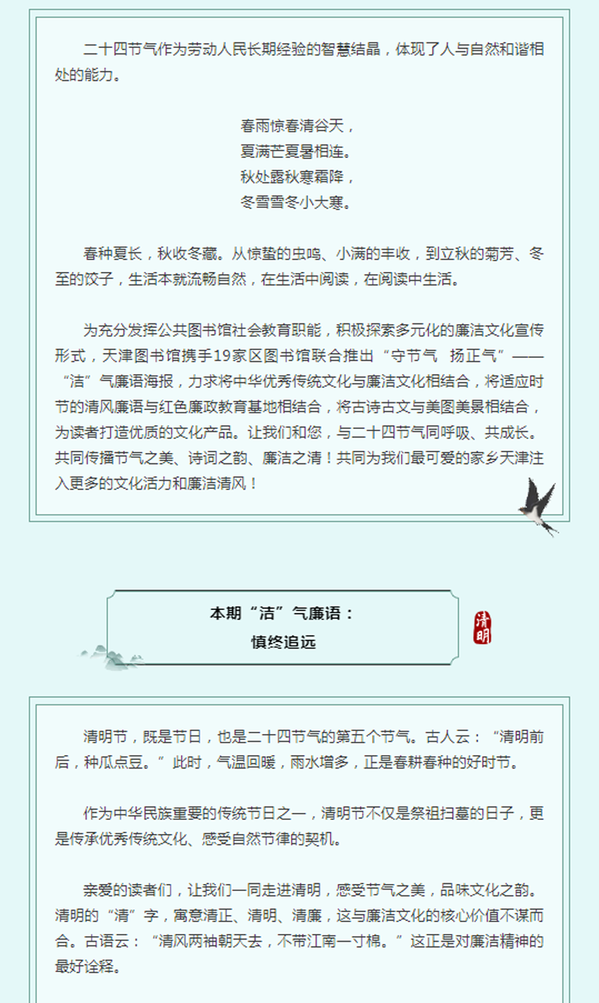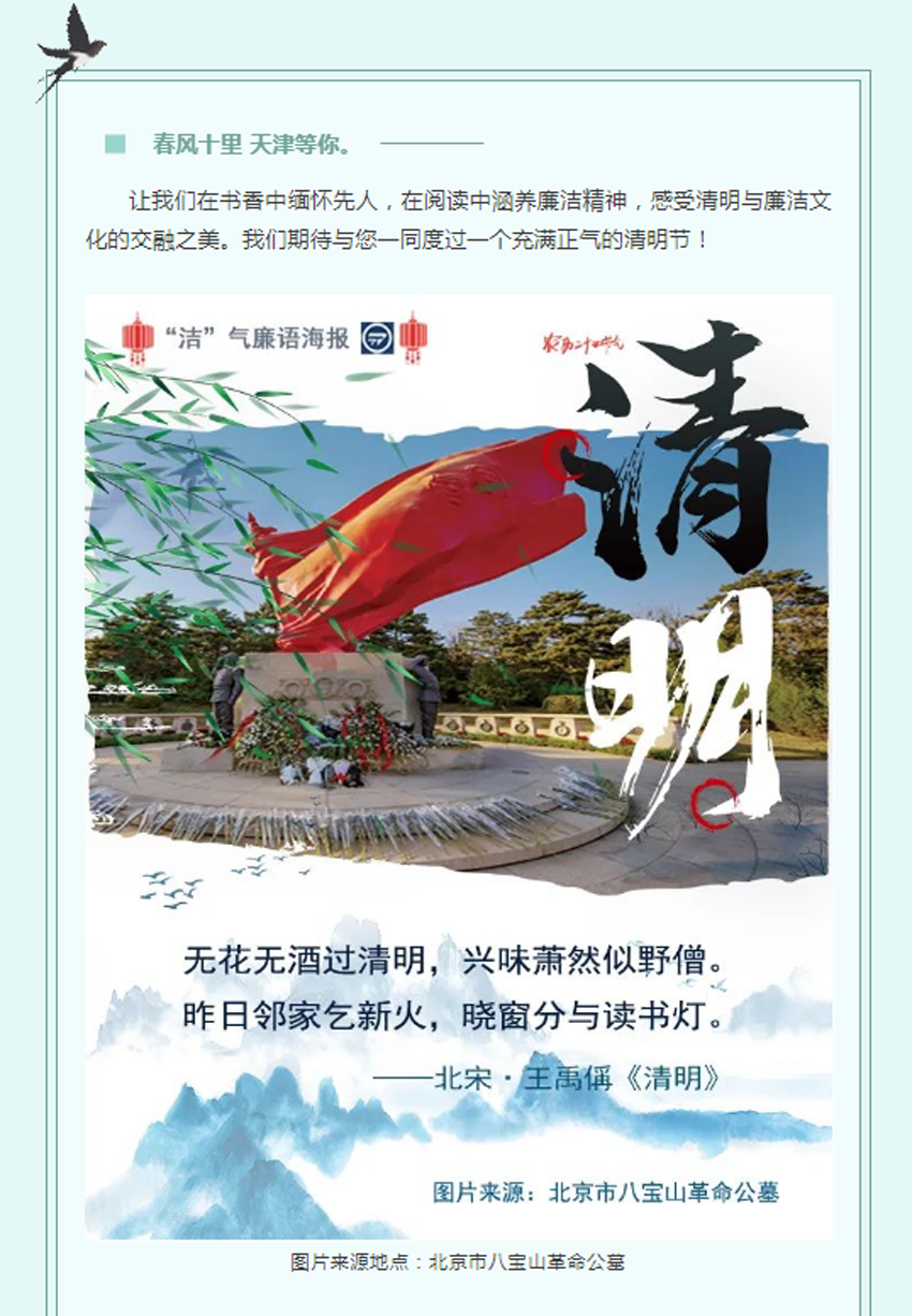 今日清明丨“守节气 扬正气”——“洁”气廉语海报