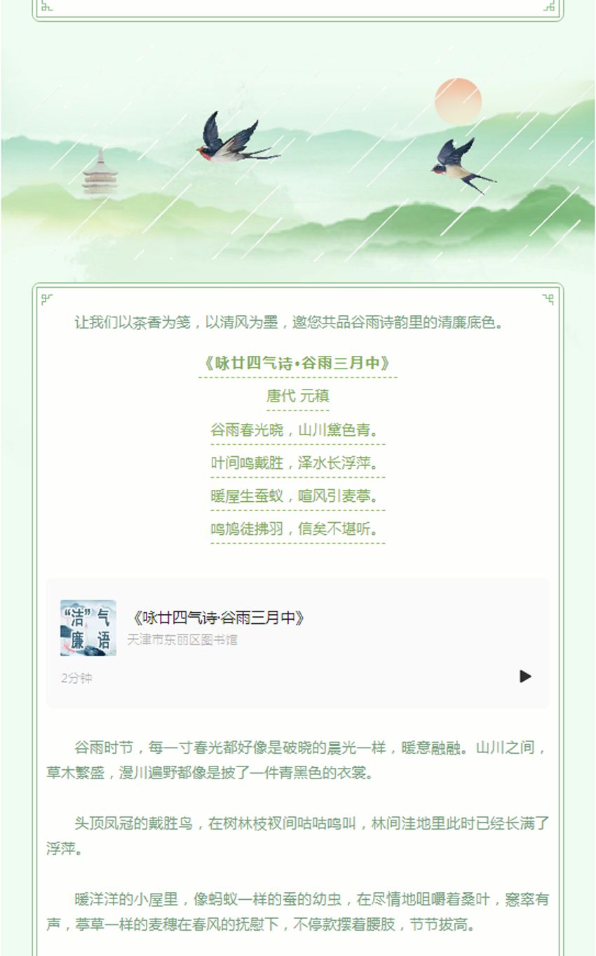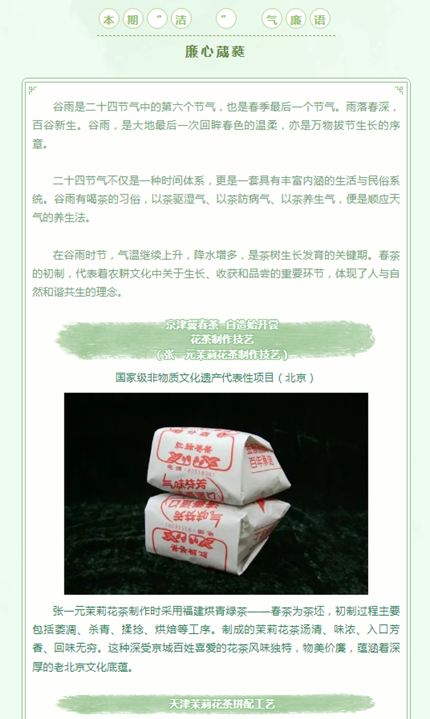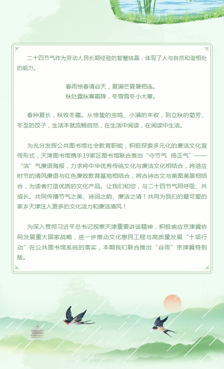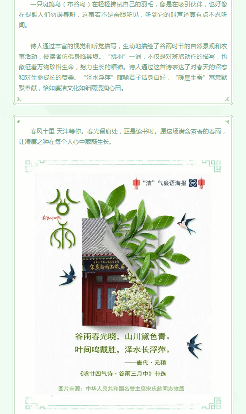 今日谷雨丨“守节气 扬正气”——“洁”气廉语海报 京津冀特别版