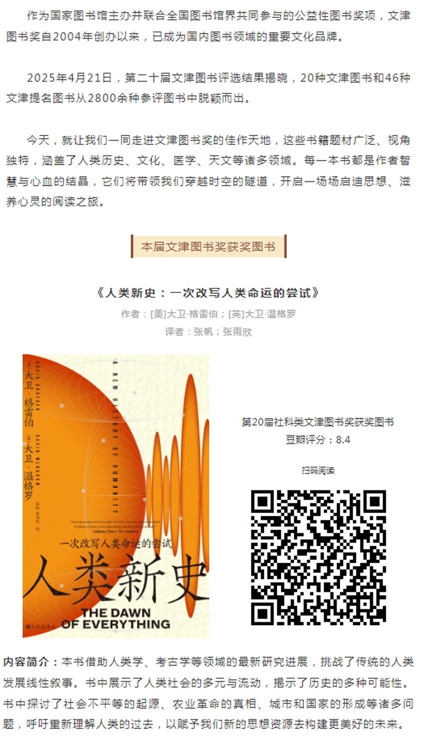 我们的中国梦·文化进万家 | 东丽区图书馆4.23世界读书日系列活动之“大奖书系”——邀您来读最新的文津图书奖书单
