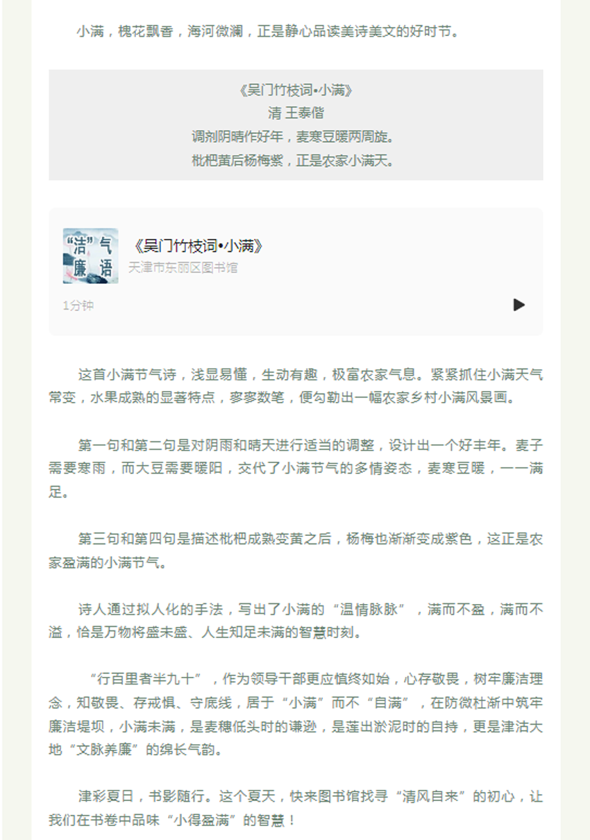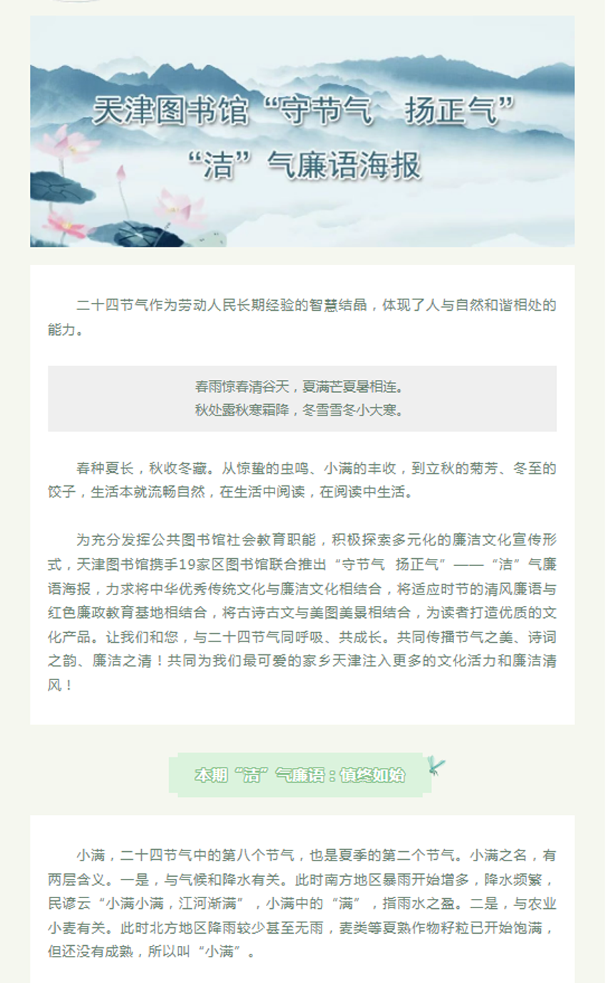 今日小满丨“守节气 扬正气”——“洁”气廉语海报