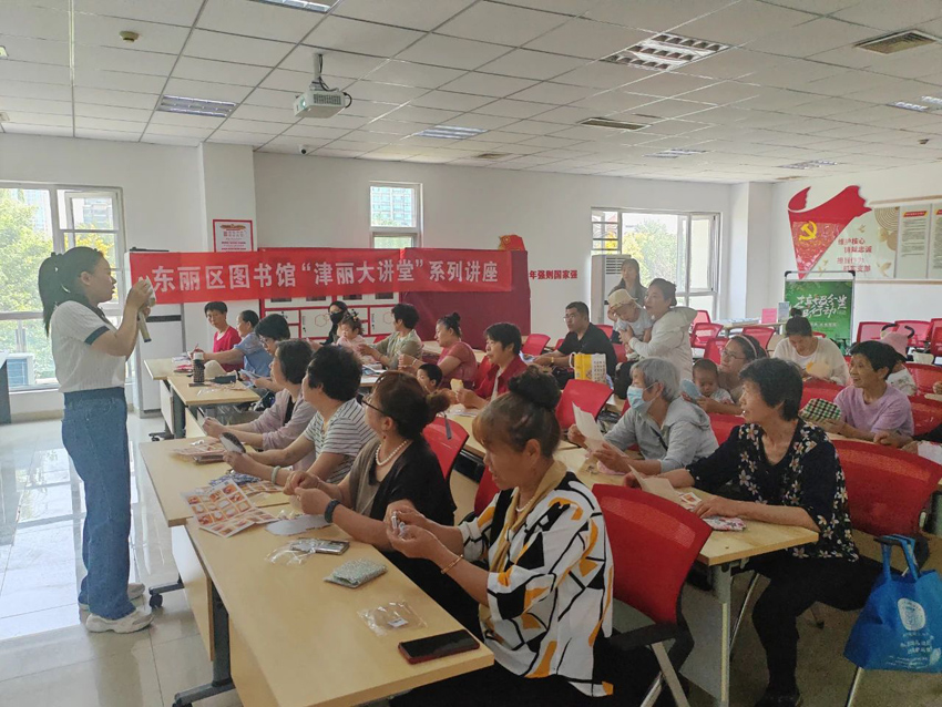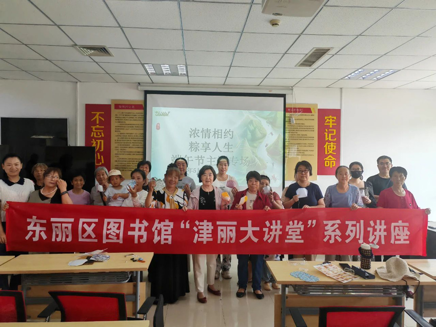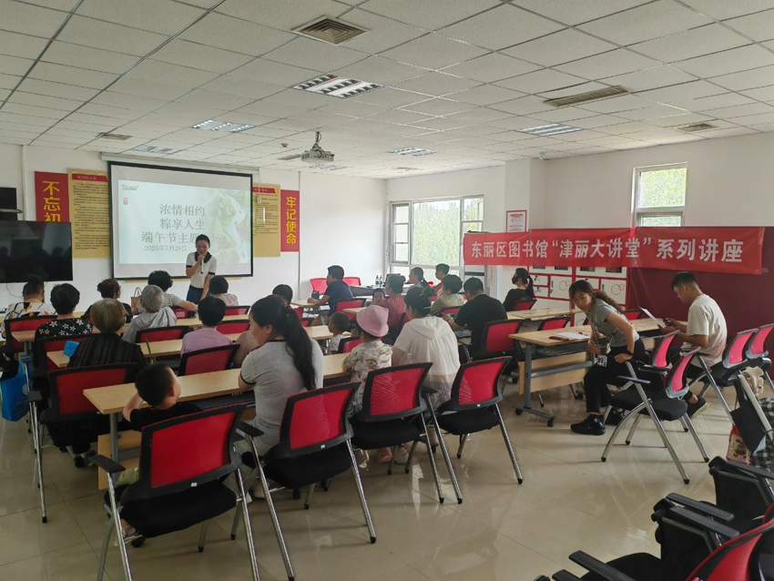 为弘扬端午传统文化,丰富老年人精神文化生活,近日东丽区图书馆“津丽大讲堂”在东丽湖街沁水苑社区党群服务中心举办“端午传情 乐享银龄”文化公益活动。活动围绕民俗体验、健康关怀、文化互动展开,吸引了辖区百余名老年读者参与,现场粽叶飘香、笑语盈盈,传递出浓厚的节日温情。