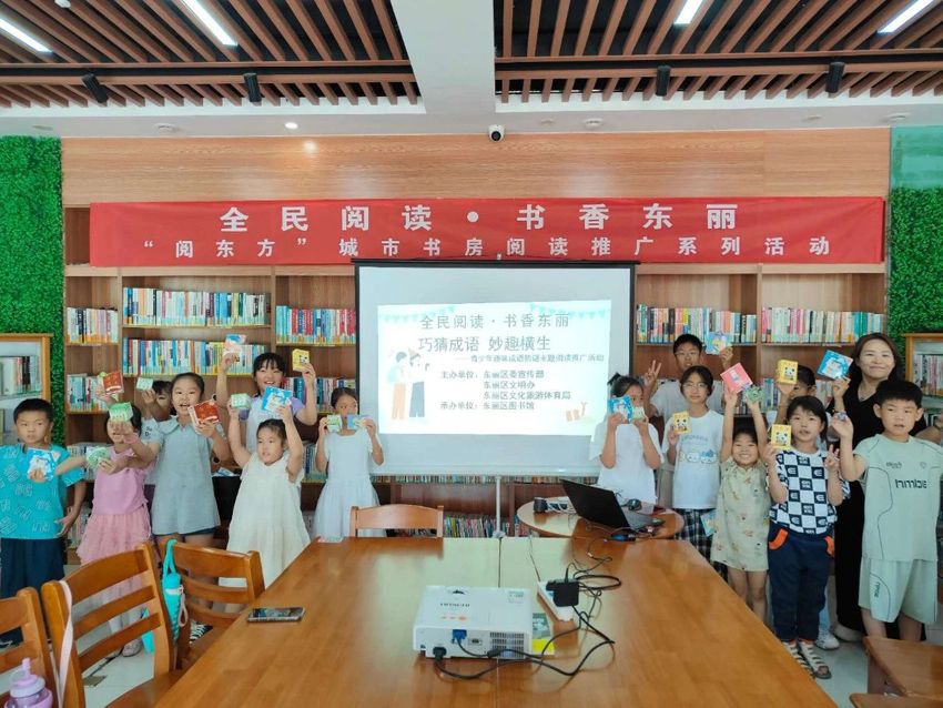 在中华文化的灿烂星河中,成语承载着千年的智慧,凝聚着古人的生活感悟与道德教诲。为激发青少年对中华传统文化的热爱,提升青少年语言素养和思维能力,2025年6月22日,东丽区阅东方金桥城市书房开展了“巧猜成语 妙趣横生”青少年趣味成语猜谜主题阅读推广系列活动,打造了一场别开生面的成语文化盛宴。