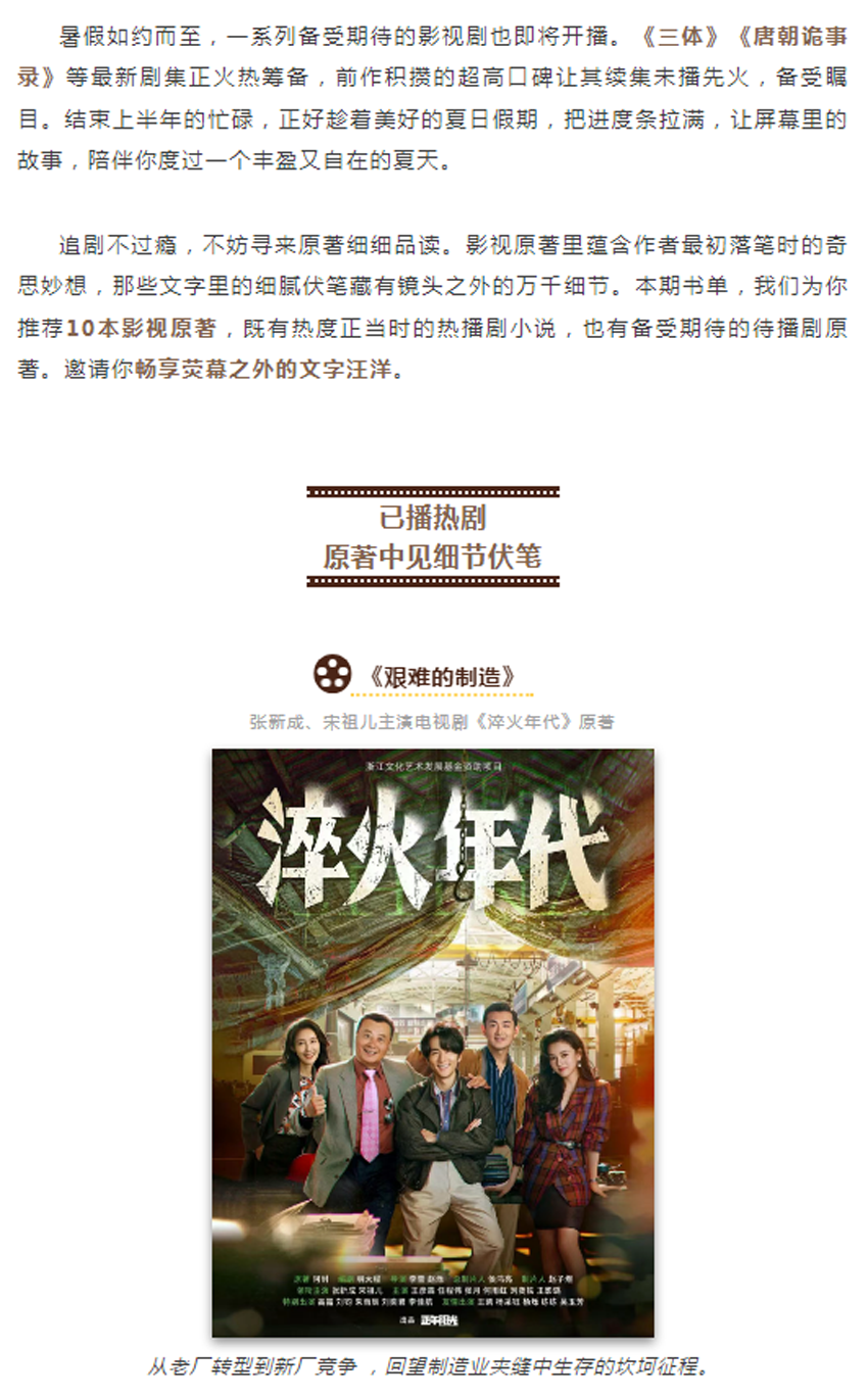暑假放映厅 |《淬火年代》《唐朝诡事录》等爆款影视剧原著等你来读