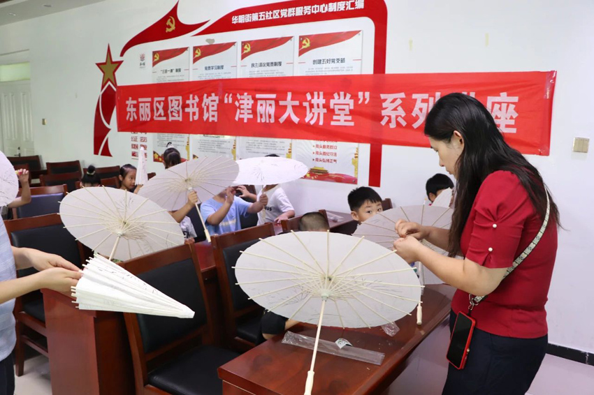 近日,东丽区图书馆“津丽大讲堂”在华明街道第五社区举办了一场以“非遗文化 油纸伞DIY”为主题的活动,旨在弘扬中华优秀传统文化,传承非物质文化遗产,丰富社区青少年的精神文化生活。此次活动吸引了30名青少年的热情参与,现场气氛热烈,互动频繁,取得了良好的社会反响。