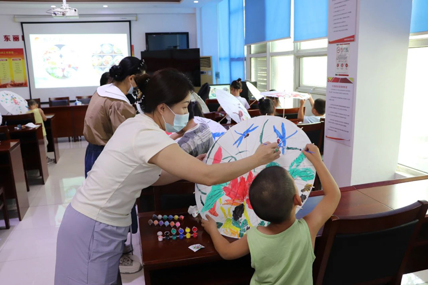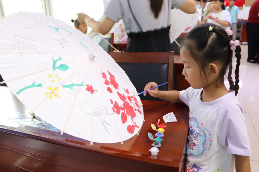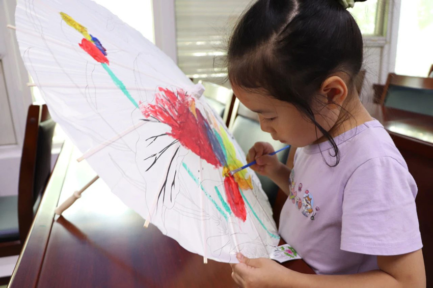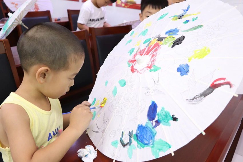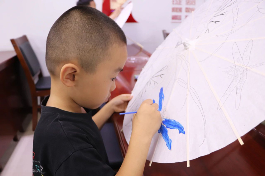 最后,青少年们进入了期待已久的DIY环节。他们拿起画笔和颜料,充分发挥自己的想象力和创造力,将原本素色的油纸伞变得色彩斑斓、独具特色。