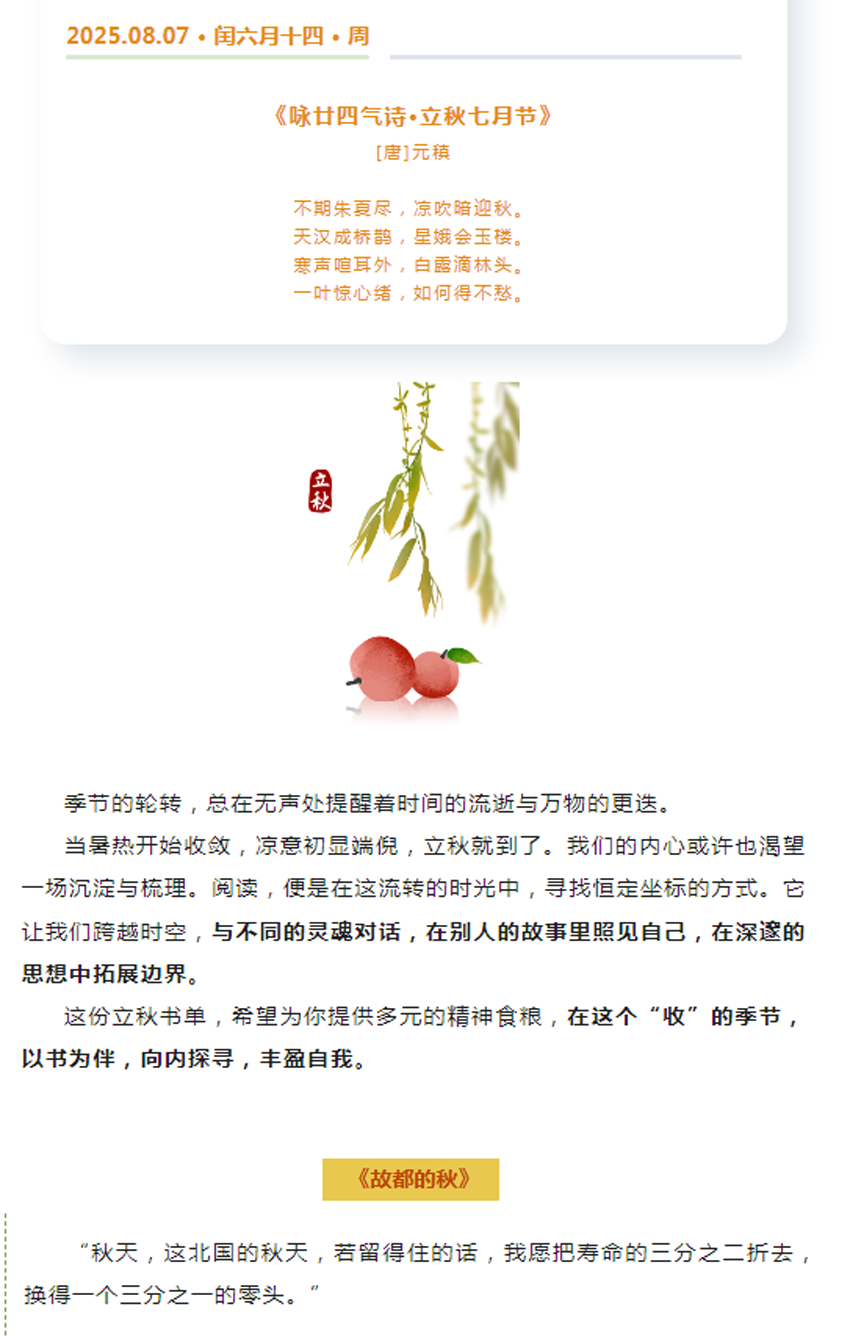 立秋书单 | 暑退凉生,万物始“收”