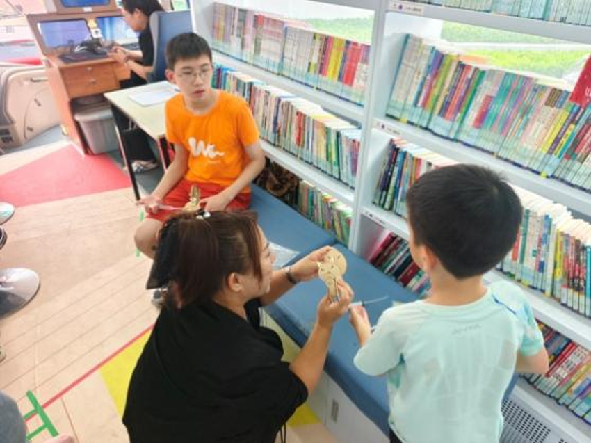 在浩瀚宇宙的无垠星河里,航天科技宛如一颗璀璨夺目的明星,引领着人类不断突破认知的边界,探索未知的奥秘。为提升青少年的科学素养,培养青少年对阅读和科学探索的热爱。2025年8月20日,东丽区图书馆流动服务车走进华明第一社区,开展了全民阅读·书香东丽——“以科技星火 助燃青春梦想“青少年暑期科普阅读主题手作活动。