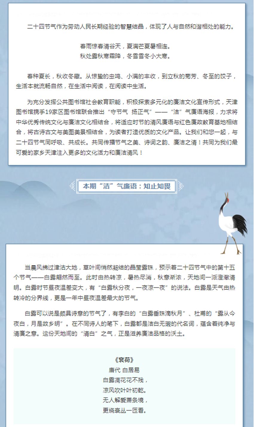 今日白露丨“守节气 扬正气”——“洁”气廉语海报