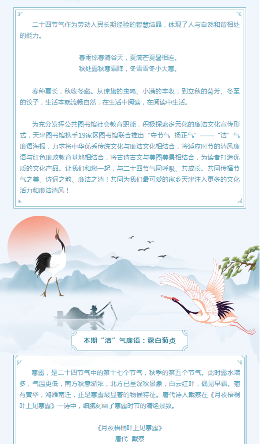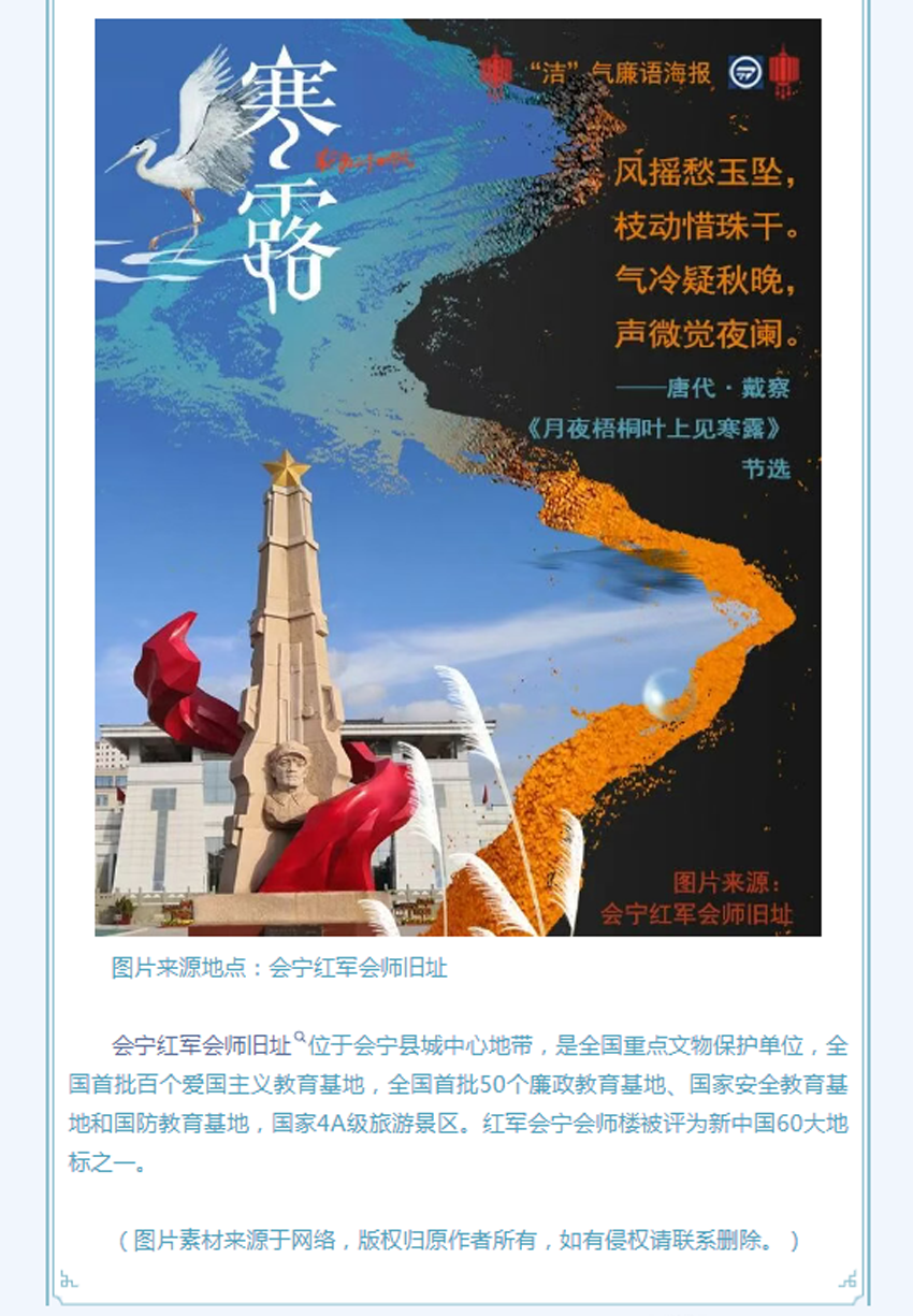 今日寒露丨“守节气 扬正气”——“洁”气廉语海报