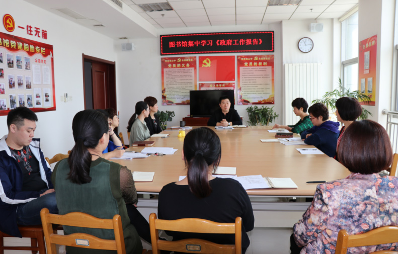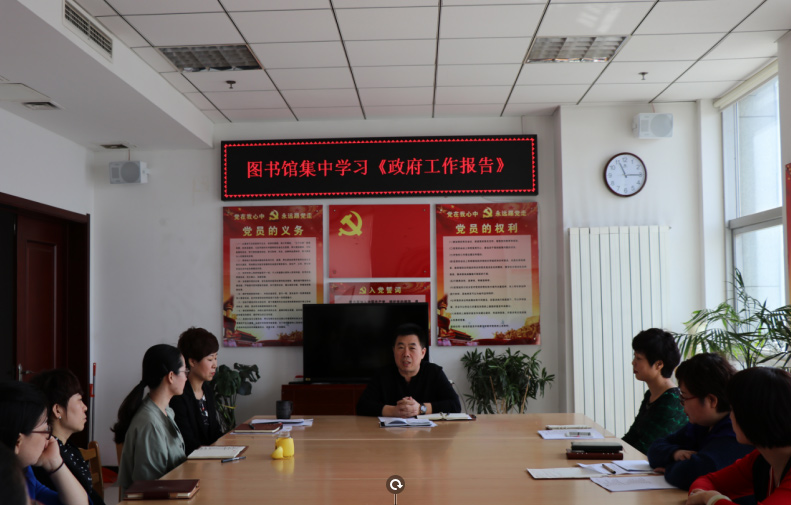 图书馆党支部组织学习《2018年政府工作报告》