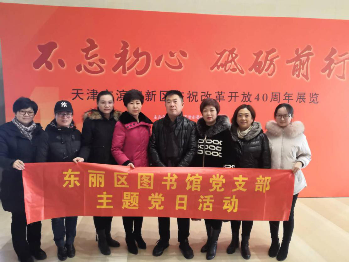 1月10日下午,图书馆党支部组织党员前往滨海新区美术馆,参观“不忘初心 砥砺前行”——天津市滨海新区庆祝改革开放40周年展览。