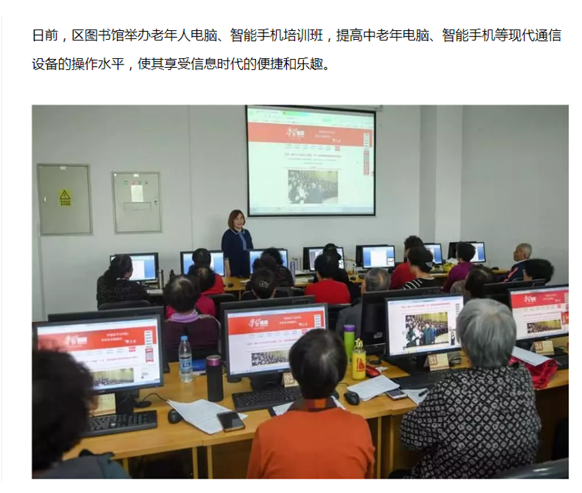 区图书馆举办老年人公益电脑智能手机培训班(点此观看视频)
