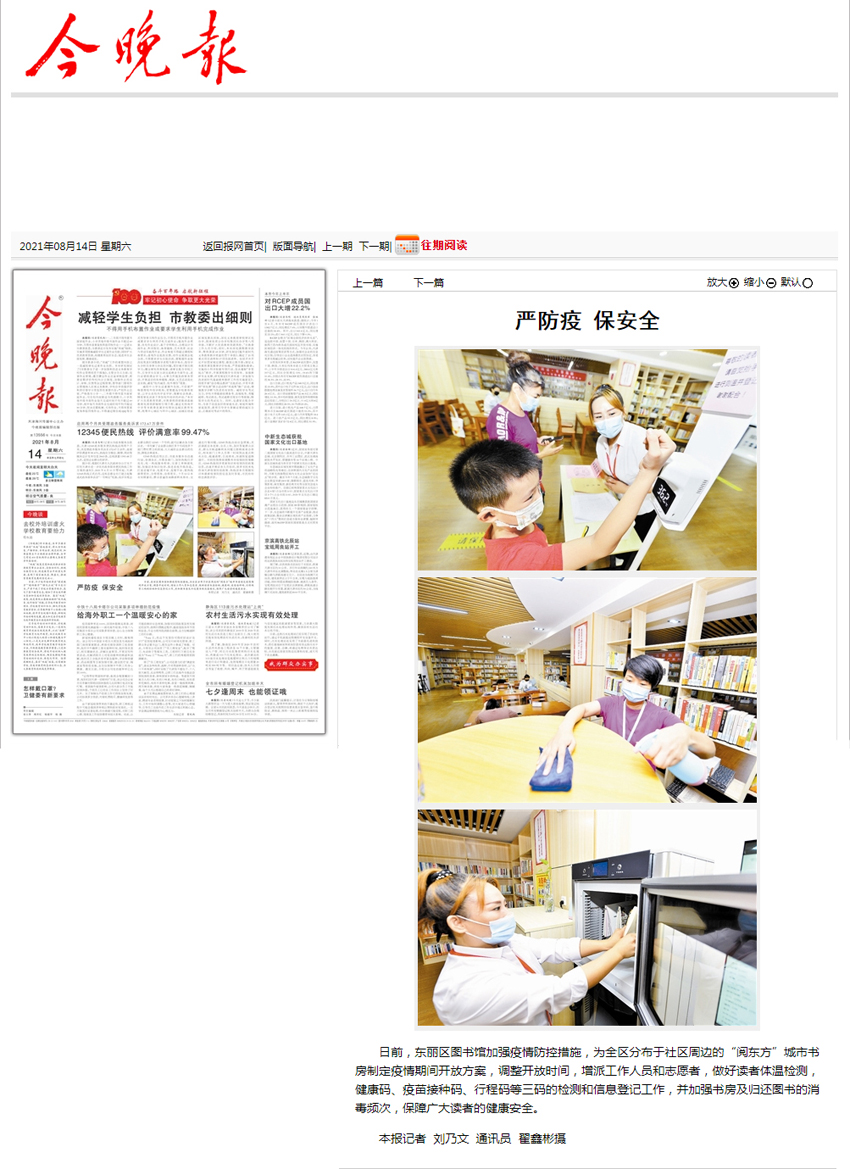 媒体镜头中的东丽区图书馆“阅东方”城市书房“严防疫 保安全”