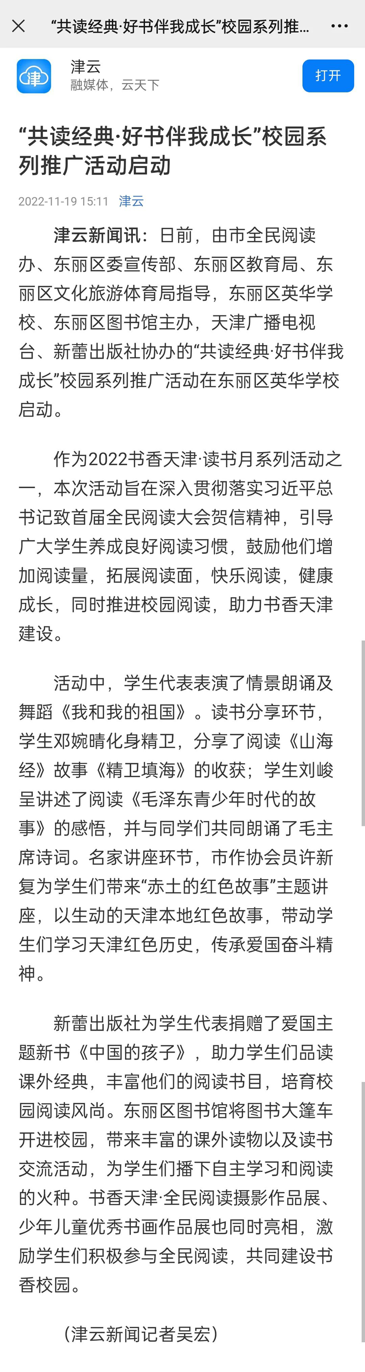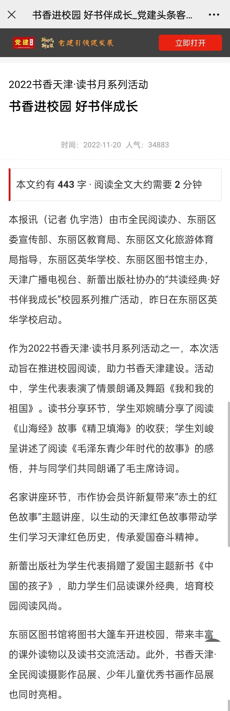 媒体镜头中的“书香进校园 好书伴成长”活动