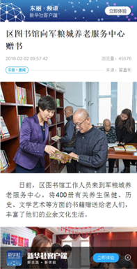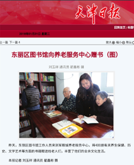 1、天津日报数字报刊平台——东丽区图书馆向养老中心赠书(图)