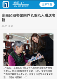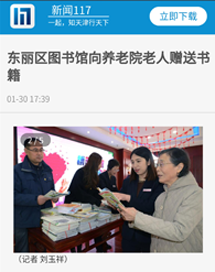 2、新闻117 一起知天津行天下 东丽区图书馆向养老院老人赠送书籍