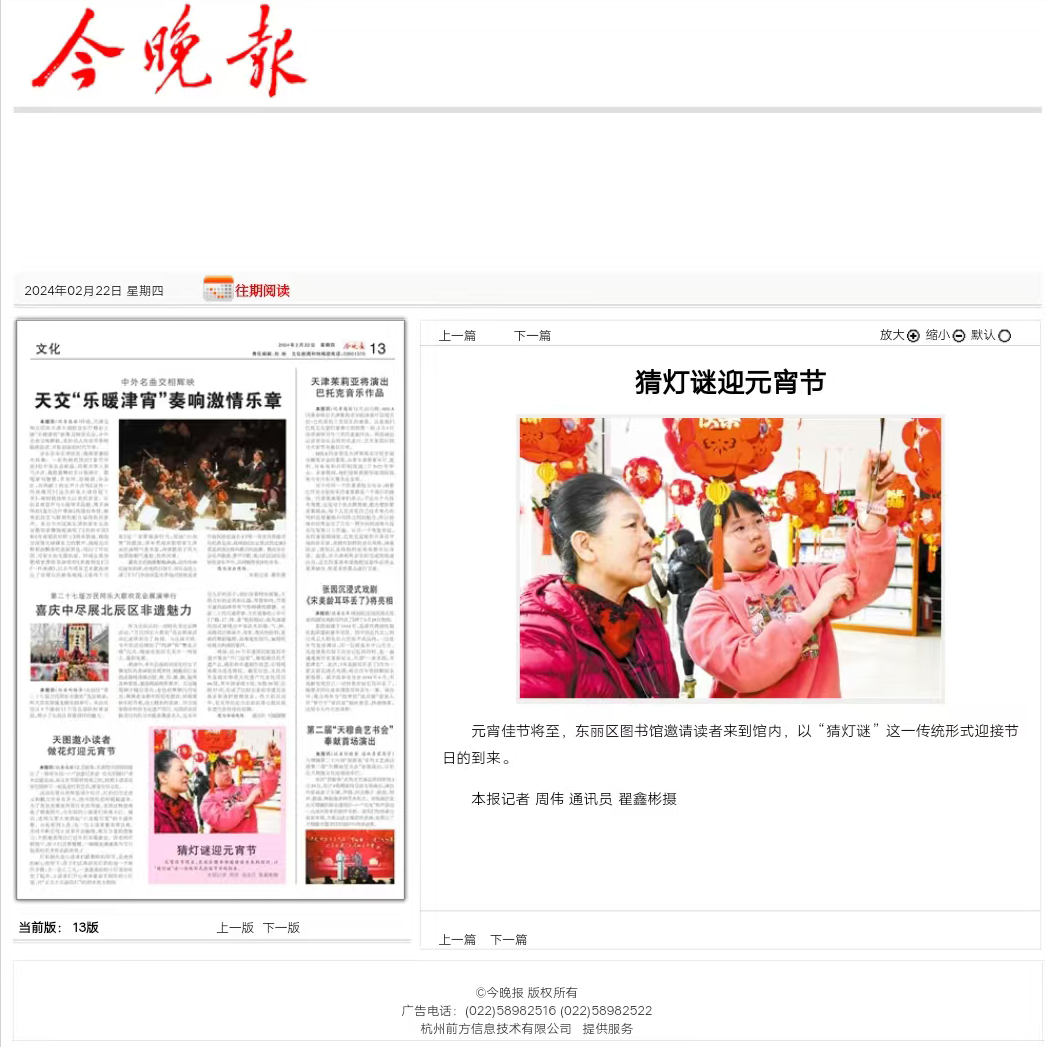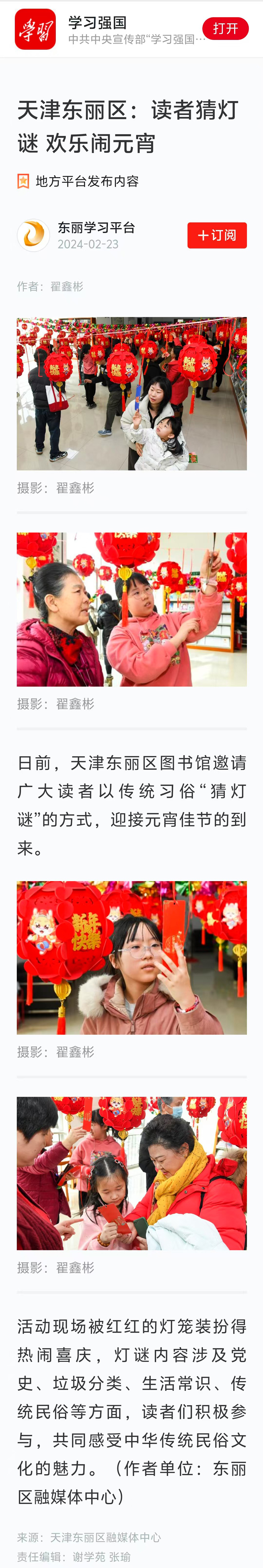 媒体镜头中的东丽区图书馆“龙舞万家欢 归心映团圆”元宵灯谜喜乐会