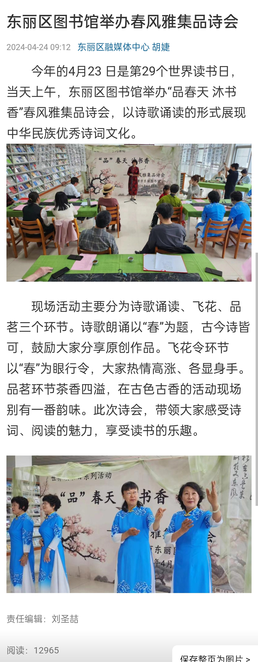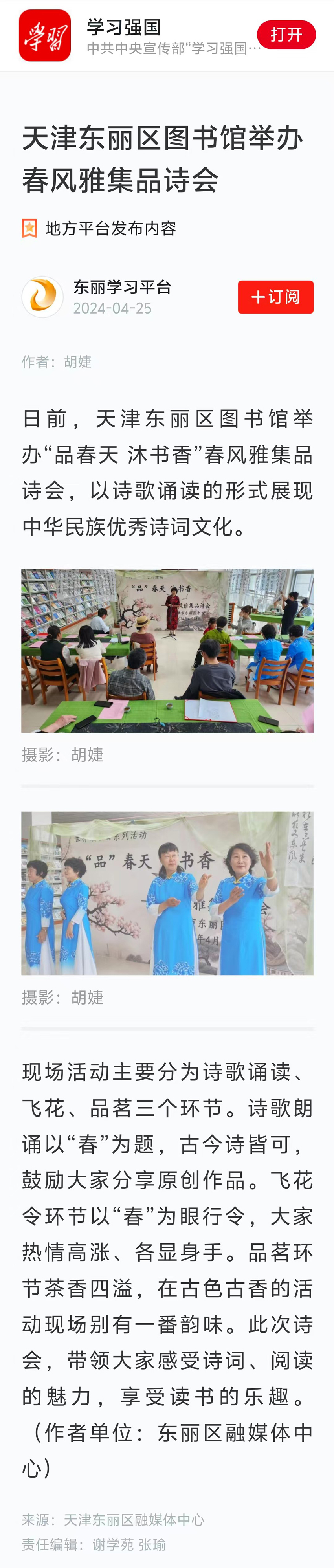 媒体镜头中的东丽区图书馆“品”春天 沐书香——春风雅集品诗会