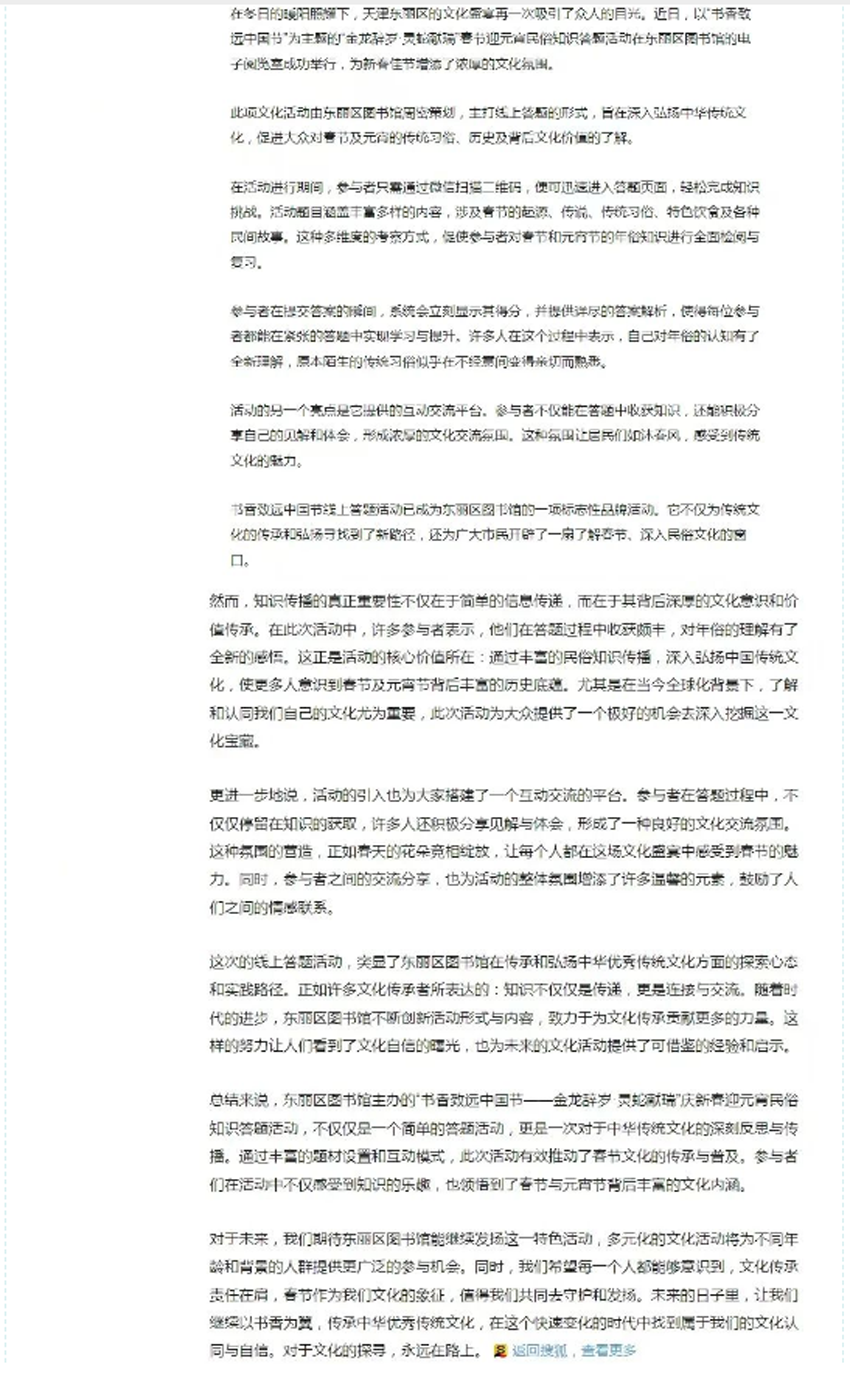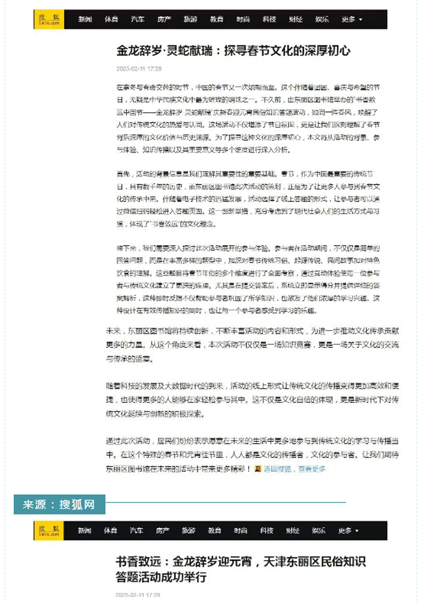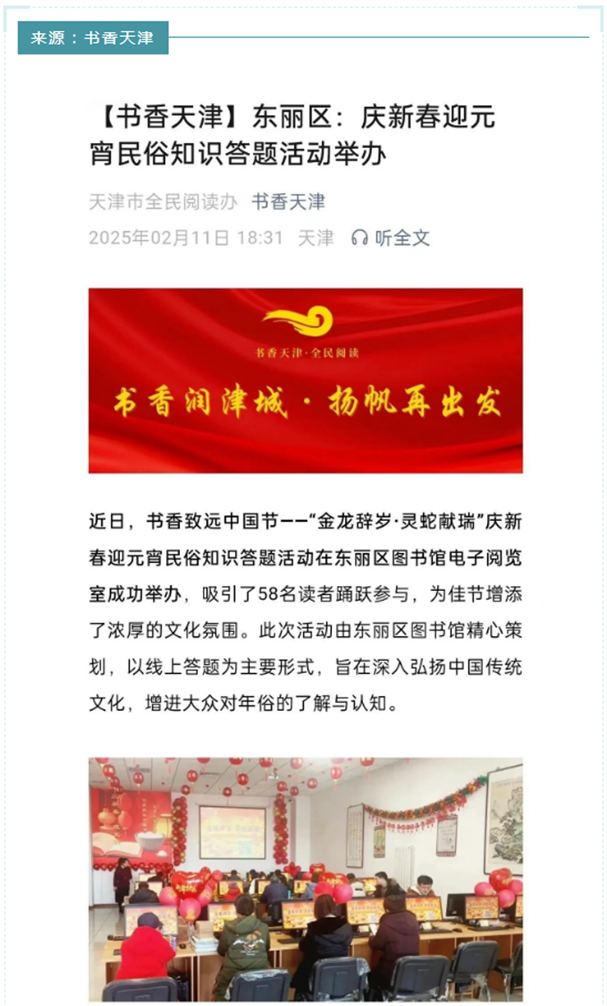 媒体镜头中的东丽区图书馆:书香致远中国节——“金龙辞岁·灵蛇献瑞”庆新春迎元宵民俗知识答题活动