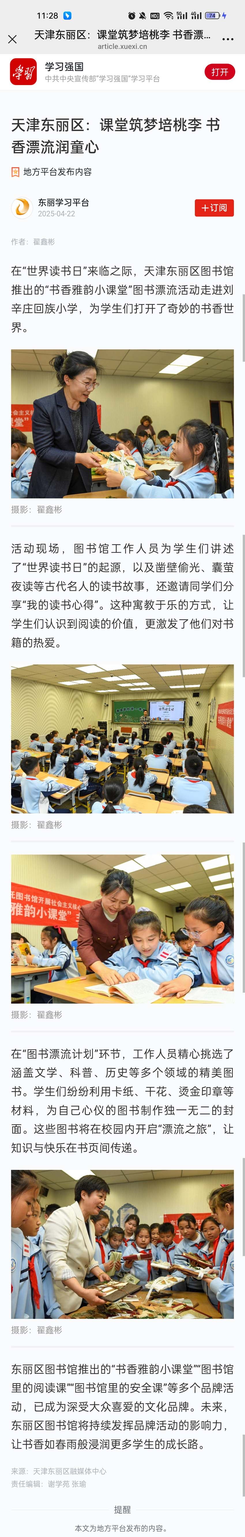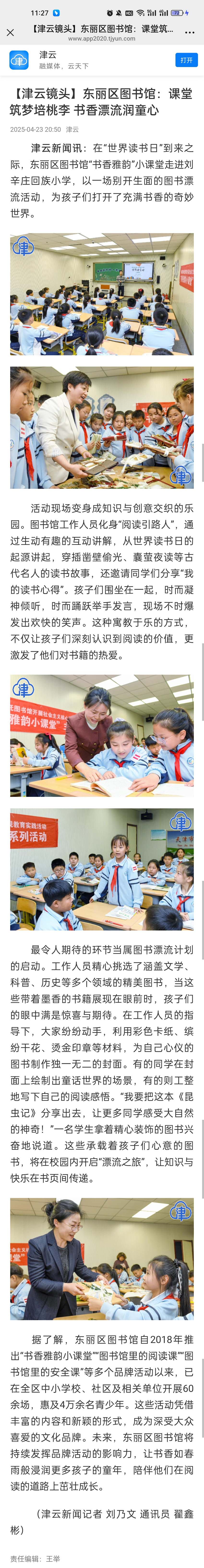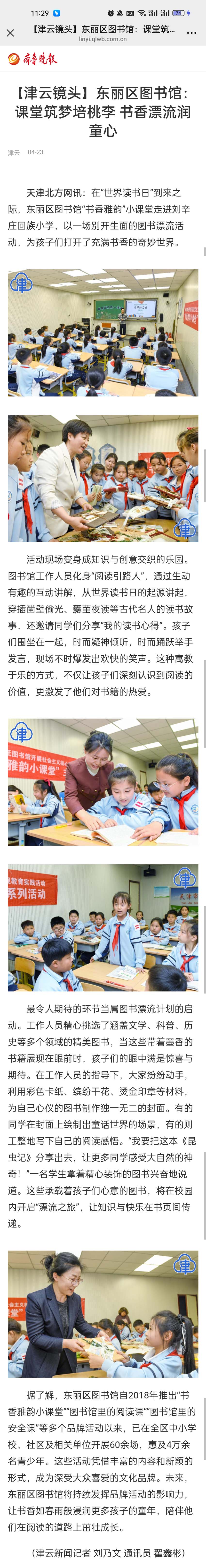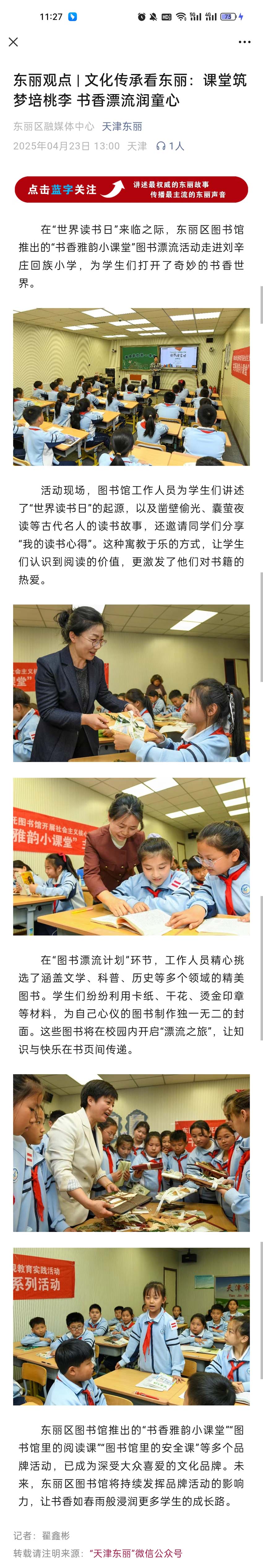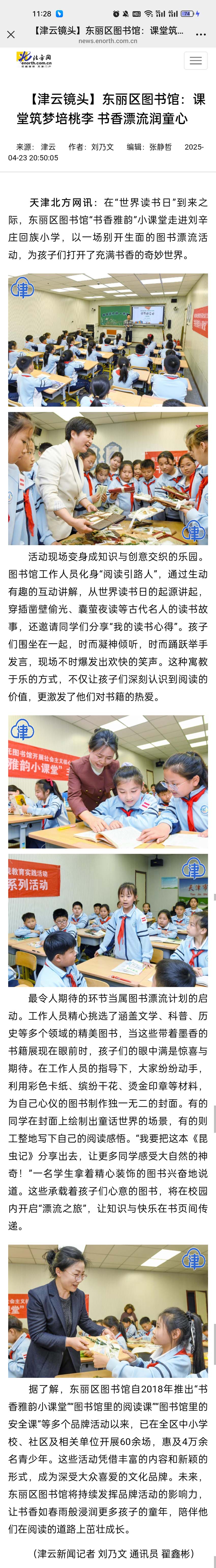 媒体镜头中的东丽区图书馆:课堂筑梦培桃李 书香漂流润童心活动